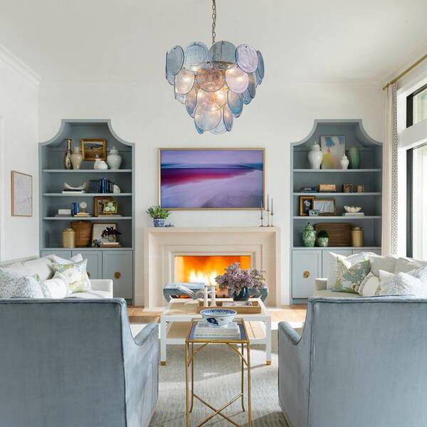 Vinto 9-Light 23.6 in. W Brushed Gold and Blue Tiered Vintage Chandelier with Colorful Glass Discs for Living Room