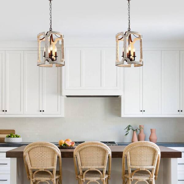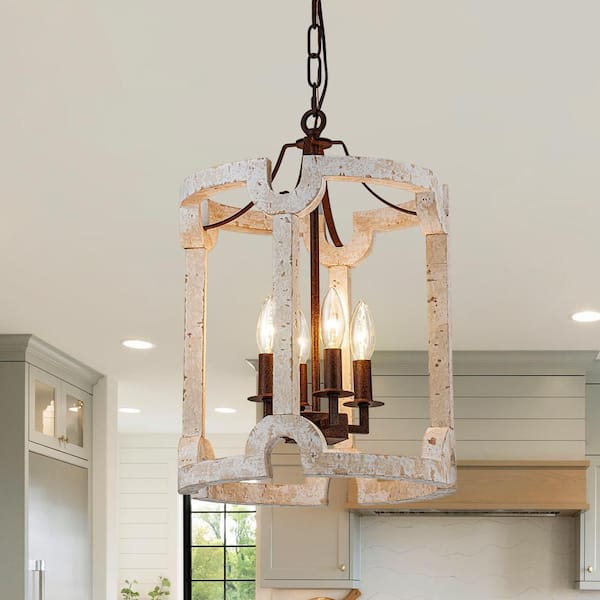 Vivacity 4-Light 13 in.W Antique Copper Chandelier with Wood Frame