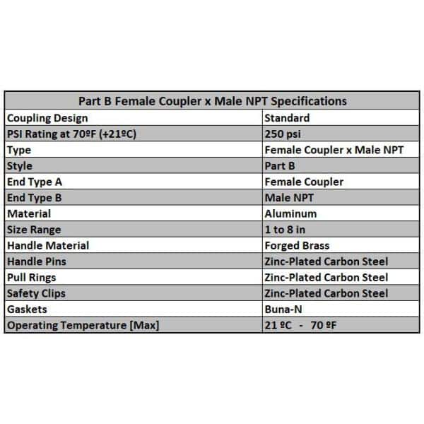 2 in. Part B Aluminum Female Coupler for Lay Flat Discharge Backwash and Suction Hoses