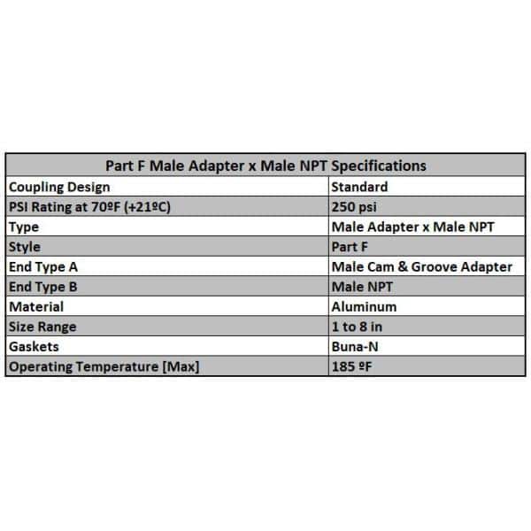 3 in. Part F Aluminum Male Adapter for Lay Flat Discharge Backwash and Suction Hoses