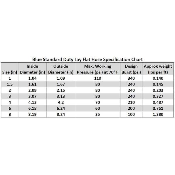 4 in. Dia x 100 ft. Blue 6 Bar Heavy-Duty Reinforced PVC Lay Flat Discharge and Backwash Hose