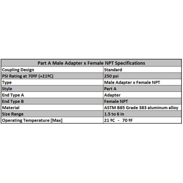 4 in. Part A Aluminum Male Adapter for Lay Flat, Discharge, Backwash and Suction Hoses