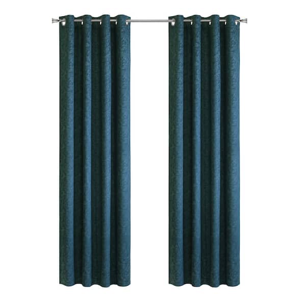 Bristol Navy Embossed Velvet 52 in. W x 63 in. L Grommet Indoor Room Darkening Curtain (Single Panel)