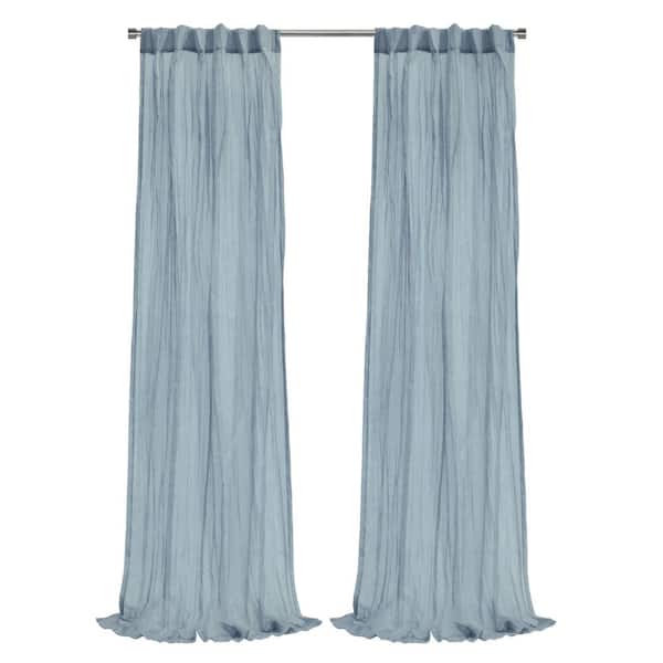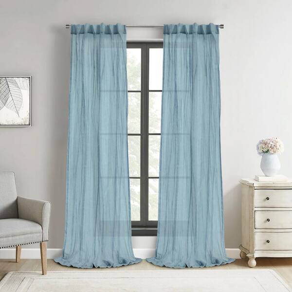 Paloma Blue Polyester Broomstick Crushed 52 in. W x 63 in. L Dual Header Indoor Sheer Curtain (Single Panel)