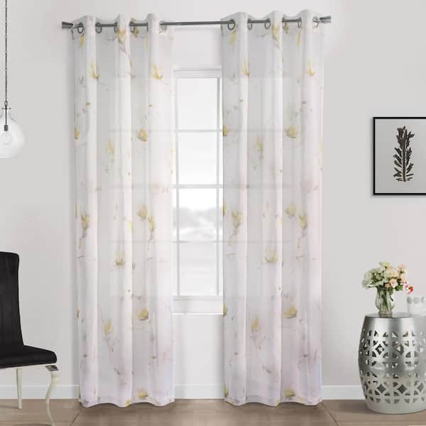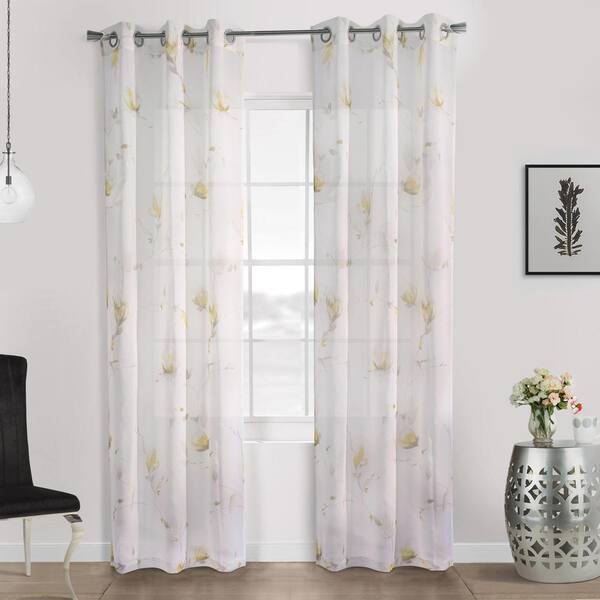 Symphony Yellow Polyester Faux Linen 52 in. W x 63 in. L Grommet Indoor Sheer Curtain (Single Panel)