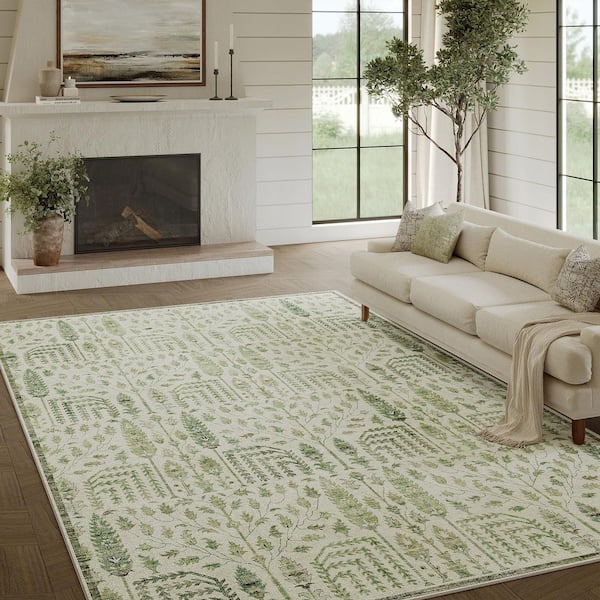 4 Seasons Light Green 9 ft. x 12 ft. Vintage Plant Area Rug