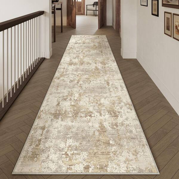 Abstraction Gold/Gray 2 ft. x 8 ft. Washable Modern Abstract Runner Rug