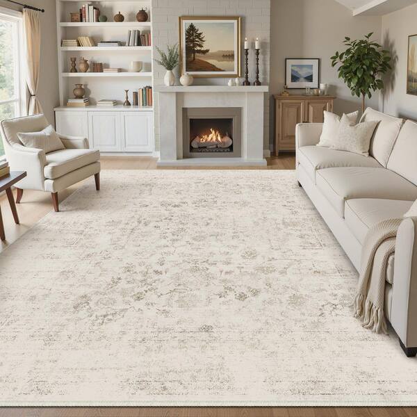 Backyard Garden Brown 9 ft. x 12 ft. Vintage Distressed Washable Area Rug