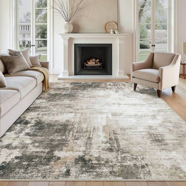 Black Hole Black/Brown 8 ft. x 10 ft. Modern Abstract Washable Area Rug