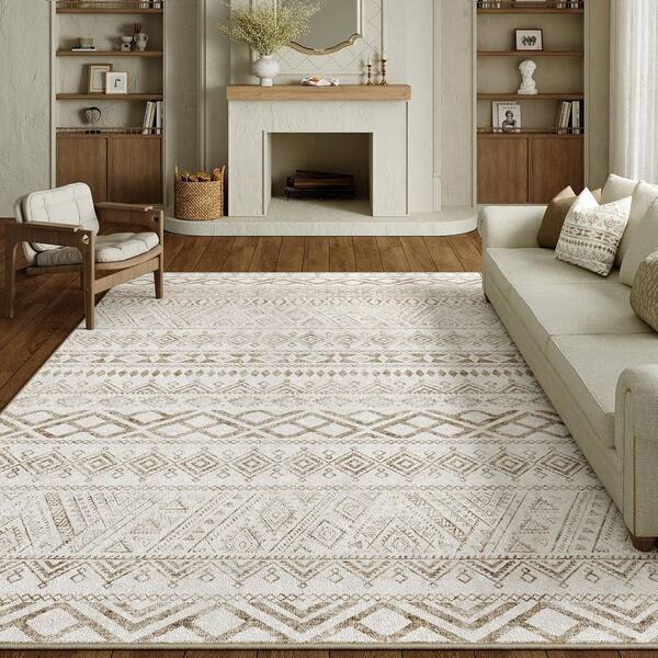 Bohemia Brown 8 ft. x 10 ft. Washable Geometric Stripes Area Rug