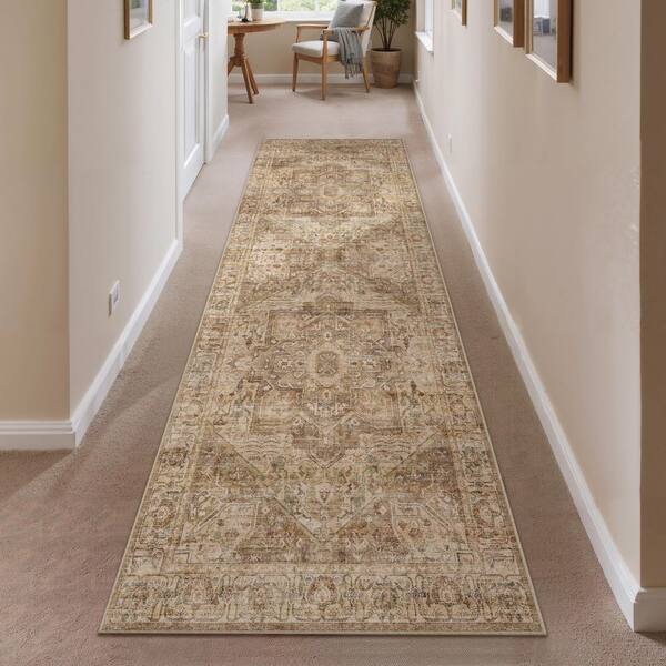 Datura Gold Brown 2 ft. x 6 ft. Oriental Vintage Medallion Runner Rug