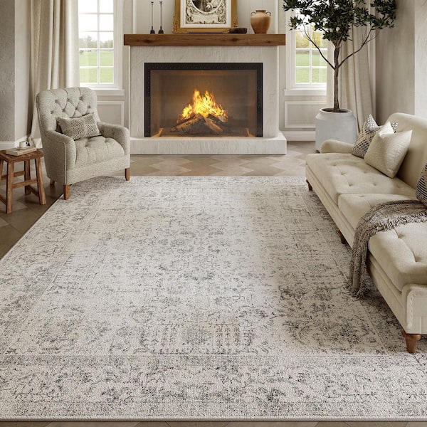 Entomology 9 ft. x 12 ft. Grey Vintage Floral Area Rug