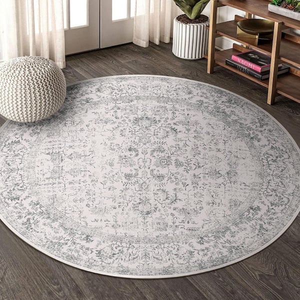 Entomology Circle Grey 4 ft. Vintage Floral Round Area Rug