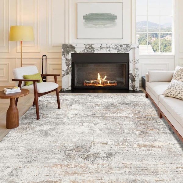 Frost 9 ft. x 12 ft. Gray/Golden Modern Abstract Area Rug