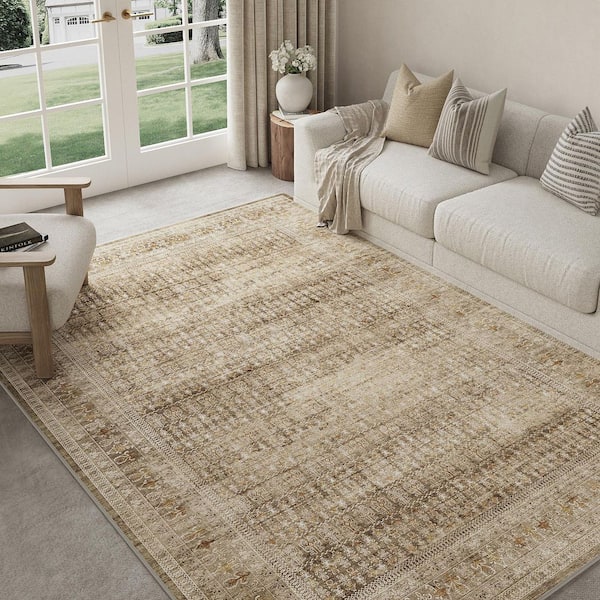 Houston Brown 5 ft. x 7 ft. Distressed Vintage Floral Area Rug