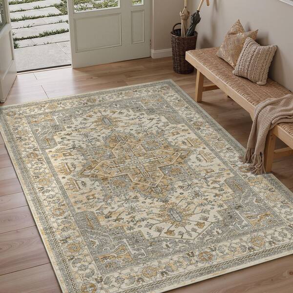 Imam Brown 5 ft. x 7 ft. Vintage Washable Medallion Distressed Area Rug