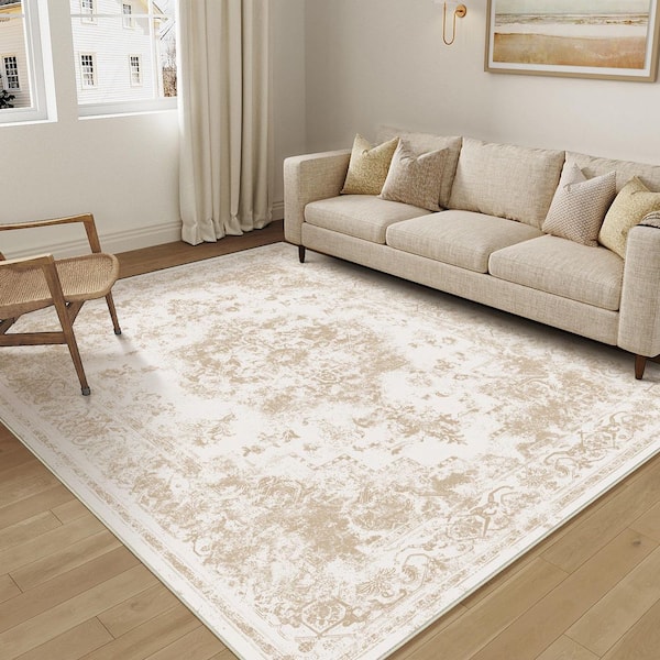 Jane Eyre Beige 6 ft. x 9 ft. Vintage Medallion Distressed Area Rug