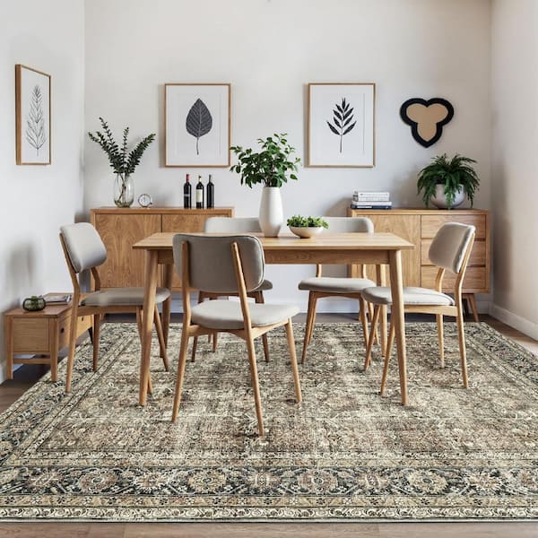 Kingston 9 ft. x 12 ft. Brown Distressed Herati All Over Design Area Rug