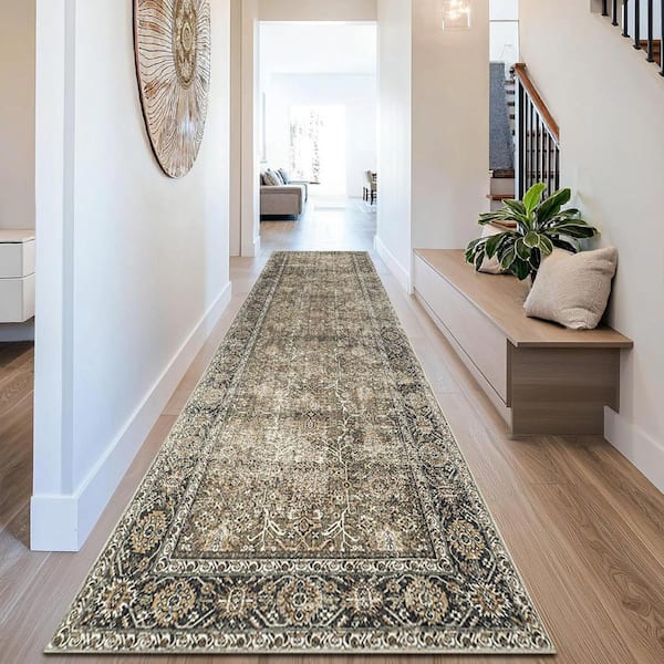 Kingston Brown 2 ft. x 8 ft. Distressed Herati All Over Design Area Rug