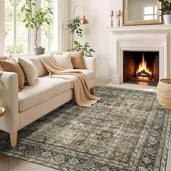 Kingston Brown 6 ft. x 9 ft. Distressed Herati All Over Design Area Rug