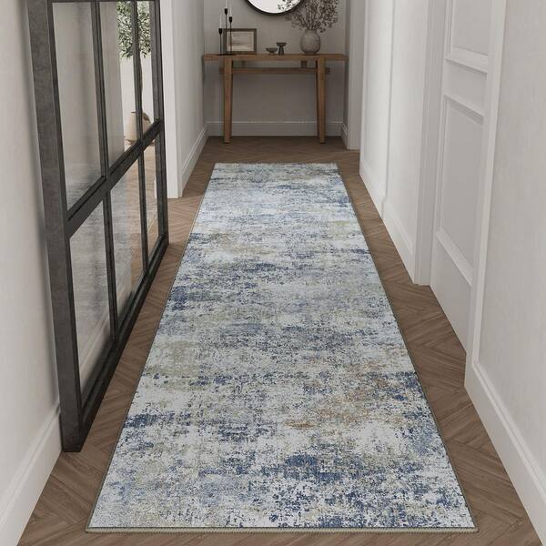 Lost City Blue 2 ft. x 8 ft. Modern Abstract Washable Runner Rug