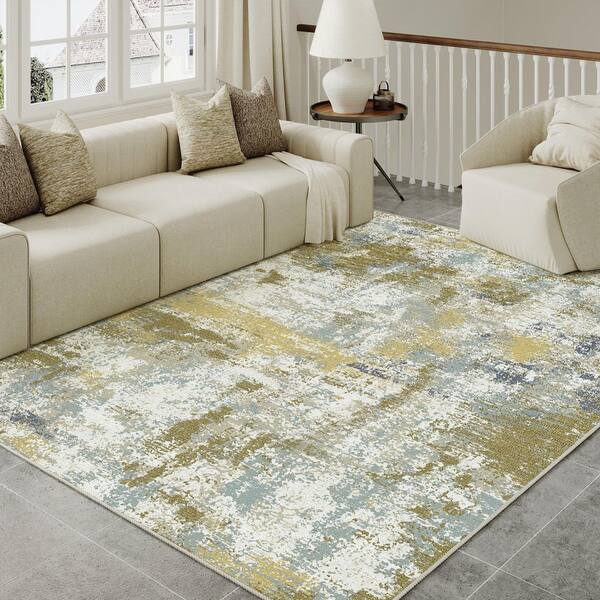 Morning Sun Brown 5 ft. x 7 ft. Washable Modern Abstract Area Rug