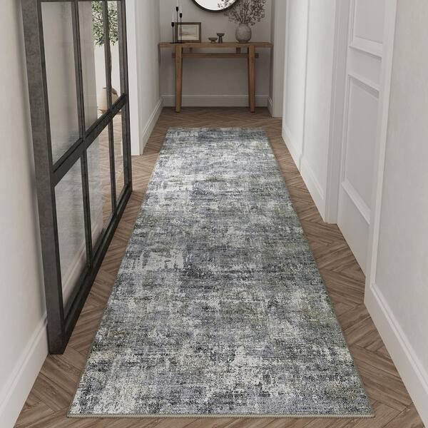 Morocco Blue/Gray 2 ft. x 8 ft. Modern Abstract Area Rug