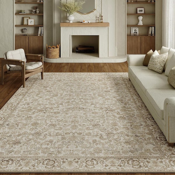 Norwegian Forest Brown 9 ft. x 12 ft. Washable Vintage Floral Area Rug