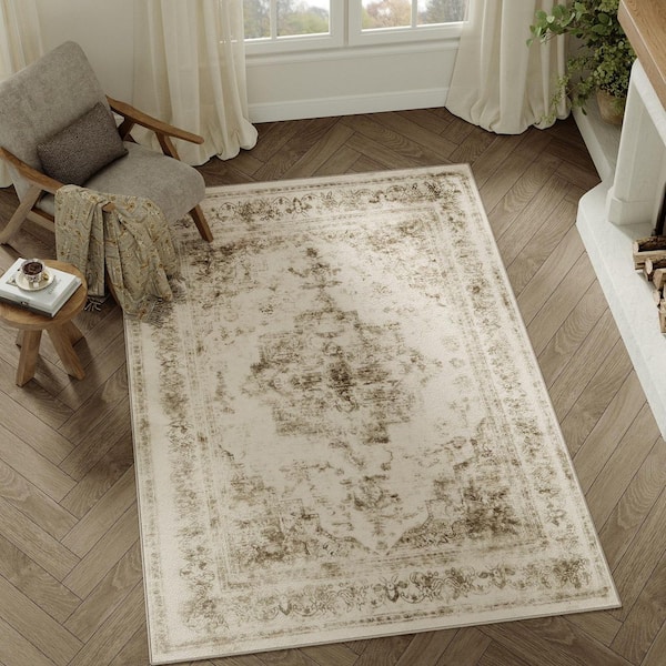 Persia Taupe 4 ft. x 6 ft. Vintage Medallion Distressed Area Rug