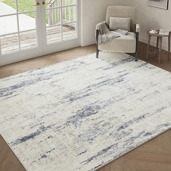 Plum Rain Blue/Beige 5 ft. x 7 ft. Washable Modern Abstract Area Rug
