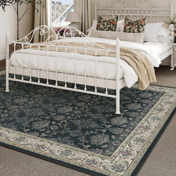 Shimmer Black 6 ft. x 9 ft. Washable Distressed Vintage Floral Area Rug