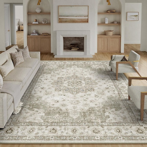 Star Dream Gray 9 ft. x 12 ft. Vintage Washable Medallion Distressed Area Rug