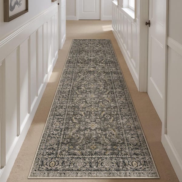 Tehran Black 2 ft. x 8 ft. Vintage Perris All Over Design Runner Rug