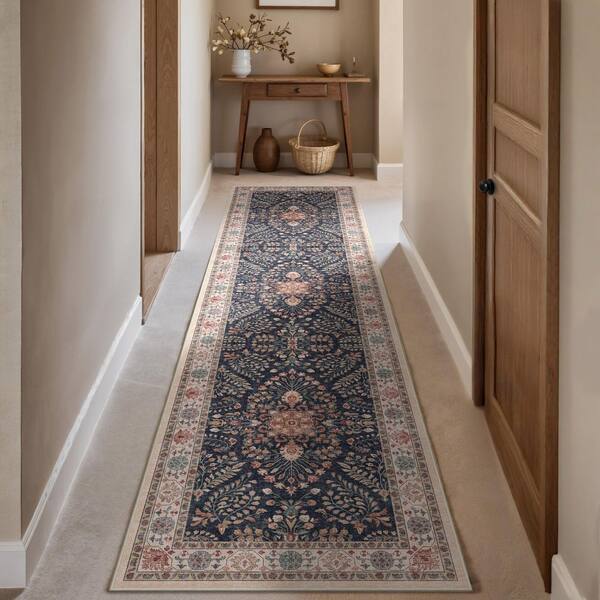Vienna Black 2 ft. x 8 ft. Washable Vintage Floral Runner Rug