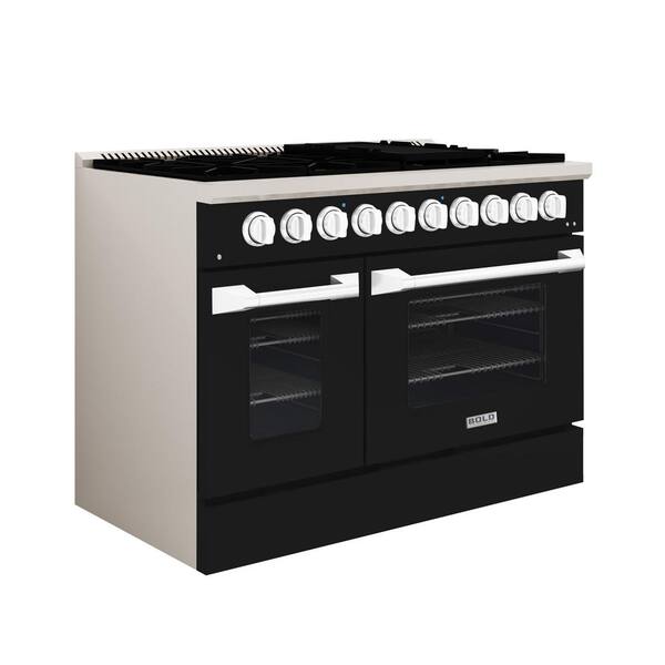 BOLD 48"6.7CF8 Burner Freestanding Double Oven Dual Fuel Range with Gas Stove and Electric Oven in Black Stainless steel