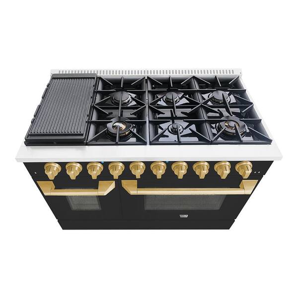 BOLD 48 in. TTL 6.7 CuFt 8 Burner Freestanding Dual Fuel Range LP Gas Stove and Electric Oven, Matte Graphite Brass Trim