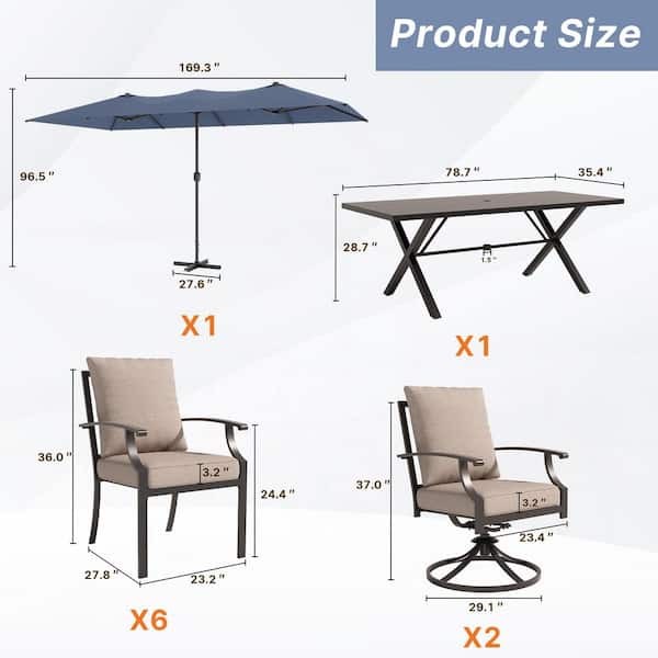 10-Piece Metal Patio Outdoor Dining Set with Swivel Chairs, Rectangular Table, Double-Sided Umbrella and Sand Cushion