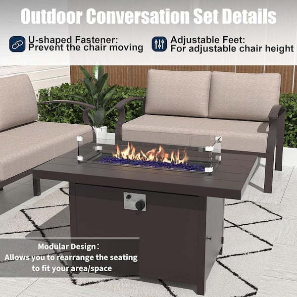10-Seat Aluminum Patio Conversation Set with armrest, Firepit Table, Swivel Rocking Chairs and Sand Cushions