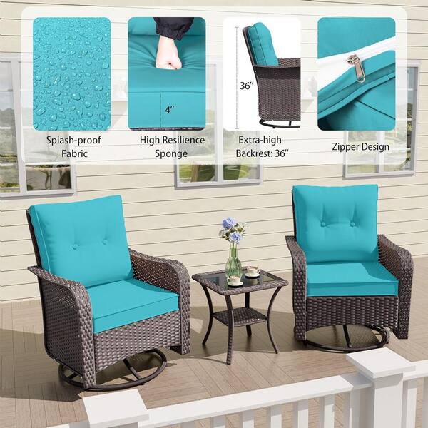 11-Piece Wicker Patio Conversation Set with Fire Pit Table, Glass Coffee Table, Swivel Rocking Chairs and Cushion Blue
