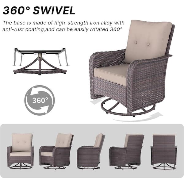 11-Piece Wicker Patio Conversation Set with Fire Pit Table, Glass Coffee Table, Swivel Rocking Chairs and Cushion Sand