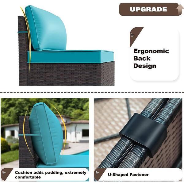13-Piece Wicker Patio Conversation Set with 55000 BTU Gas Fire Pit Table and Glass Coffee Table and Cushions Blue