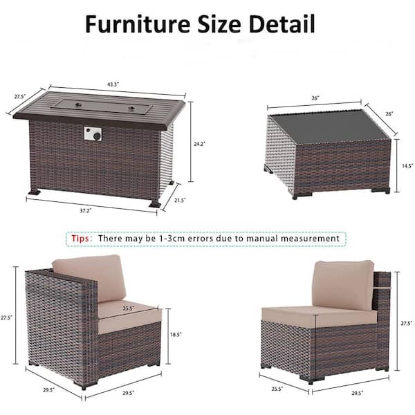 13-Piece Wicker Patio Conversation Set with 55000 BTU Gas Fire Pit Table and Glass Coffee Table and Sand Cushions
