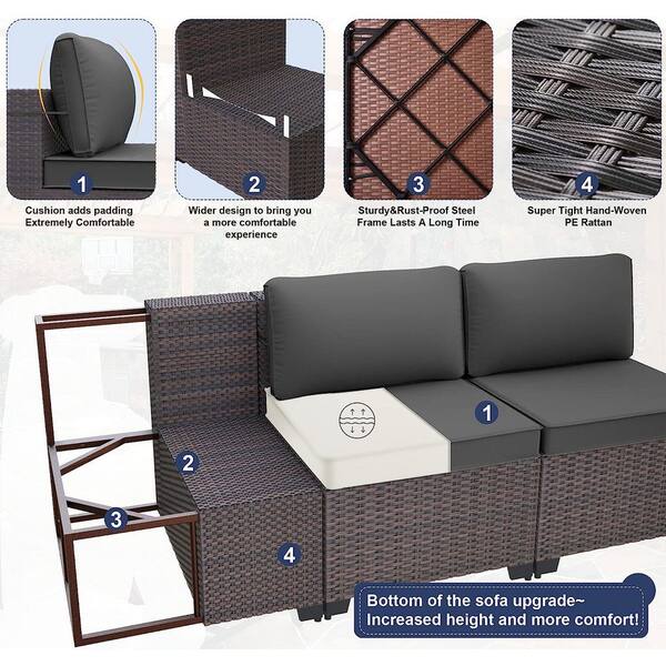 14-Piece Wicker Patio Conversation Set with 55000 BTU Gas Fire Pit Table and Glass Coffee Table and Grey Cushions