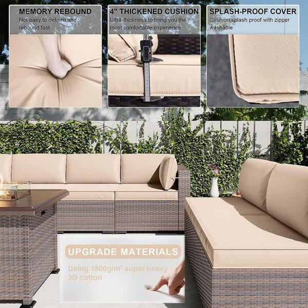 15-Piece Wicker Patio Conversation Set with 55000 BTU Gas Fire Pit Table and Glass Coffee Table and Sand Cushions