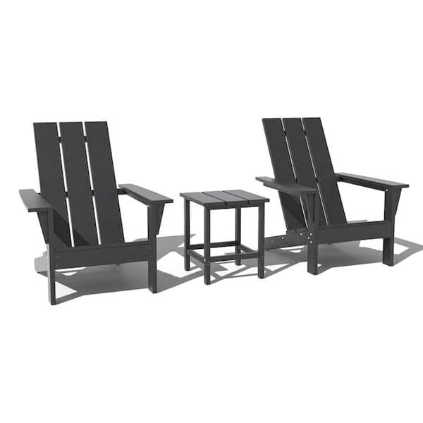 3-Piece Black Weather Resistant Classic HDPE Poly Plastic Outdoor Adirondack Chair Set with 2 Chairs and Side Table