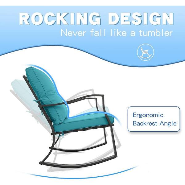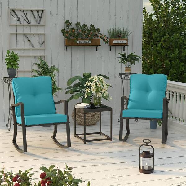 3-Piece Mental Rocking Patio Conversation Set with Cushion Blue