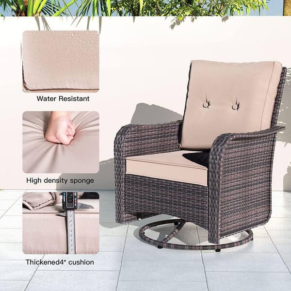 3-Piece Wicker Swivel Outdoor Rocking Chair with Cushion Sand