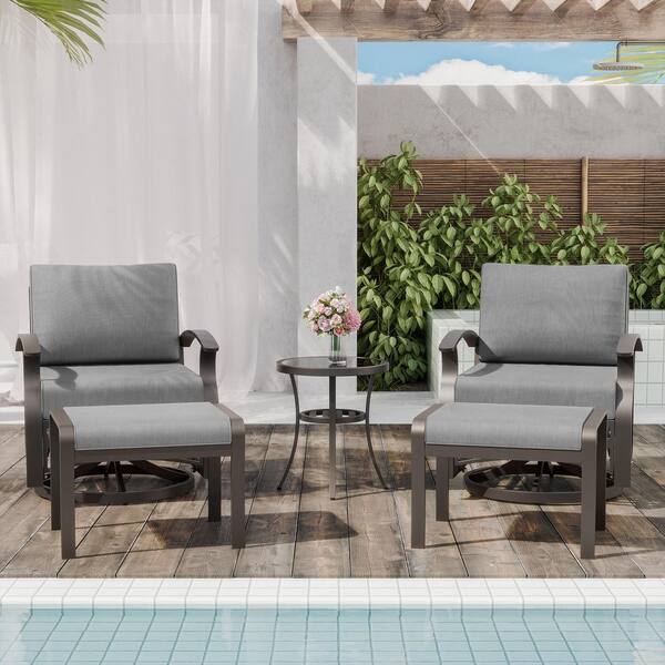 5-Piece Aluminum Swivel Outdoor/Indoor Rocking Chairs Patio Conversation Set with Grey Cushions and Table, Footstool
