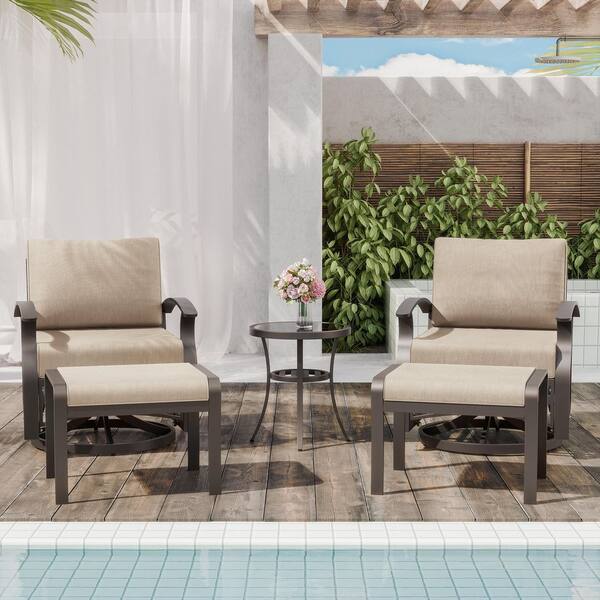 5-Piece Aluminum Swivel Outdoor/Indoor Rocking Chairs Patio Conversation Set with Sand Cushions and Table, Footstool