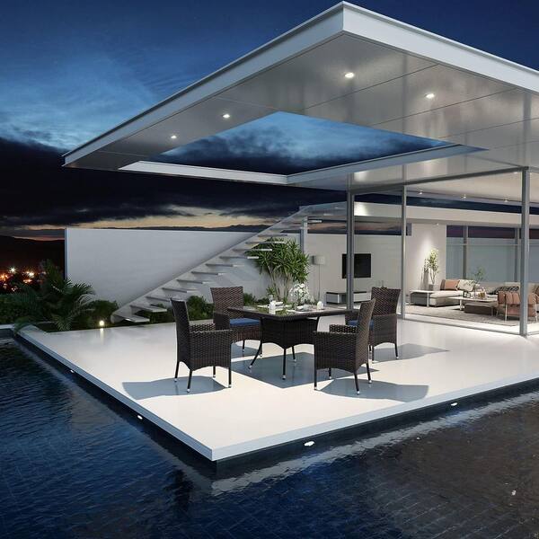 5-Piece Wicker Square Patio Outdoor Dining Set with Glass Tabletop and 1.5 in. Umbrella Hole, Navy Cushion